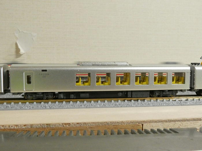 ところがこの車両のNケージ模型化に敢然と挑んだメーカーがついに発売にこぎ着ける。そのメーカーはマイクロエース、大きな窓はキチンと再現され、動力車においても窓下だけに多くの機構を押さえ込んで非動力車と同じレベルで再現が出来た。